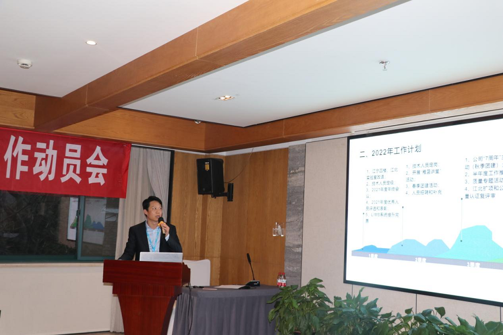 總經理張布偉總結發言,對2022年工作作出了具體部署。發言從2021年既定目標完成情況、黨建工作取得的成績、制度化和流程化管理取得的成效、公司知名度和品牌形象提升等方面進行全面總結。梳理了公司2022年的工作重點,明確了發展目標和方向,強調了進一步完善制度和流程,加強隊伍建設和企業文化建設的重要性。在充分肯定成績的同時,指出了工作中的不足和當前所面臨的壓力。要求全體員工在新的發展機遇和挑戰下,嚴守“安全、質量”底線,做好客戶服務、提升客戶體驗,堅持謙虛謹慎、扎扎實實的工作態度,繼續發揚團隊精神、以實際行動把本次大會的要求落實到工作中,確保2022年度各項工作目標順利實現。
